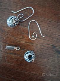 Orecchini Pandora modello introvabile vintage. argento 925. Formati da monachelle utilizzabili con altri pendenti un componente che fa da gancio e due charms che si possono inserire nell'inconico bracciale Pandora.