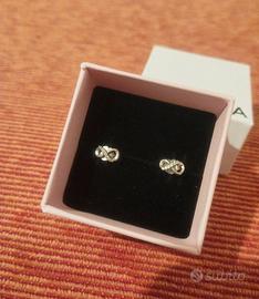 Orecchini Pandora Sparkling Infinity Stud Earrings. Realizzati in argento sterling 925, presentano il simbolo dell'infinito impreziosito da pietre dizirconia cubicaincolore che donano lucentezza al design.