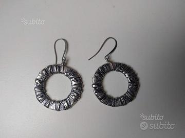 Orecchini pendenti a cerchio argentati in lega anti allergia con finitura accartocciata Diametro esterno 3,5 cmm