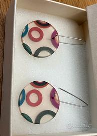 👂🏻Dai luce al tuo stile con questi splendidi orecchini pendenti a cerchio, impreziositi da un vivace motivo a cerchi colorati.