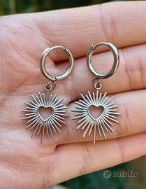 Orecchini con cuore pendente, lunghezza 4 cm, peso cadauno 1 g, acciaio anallergico, nuovi