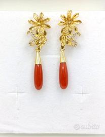 Orecchini in argento 925 bagnati in oro 18 kt con pendendte in corallo mediterraneo scuro di qualità Sardegna realizzati da maestro artigiano, montati con gancio Pompeano (i pendenti sono mobili).