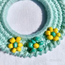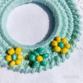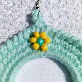 Ho realizzato questi orecchini con filato di colore verde acqua chiaro e impreziositi da fiori in perline.