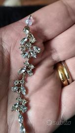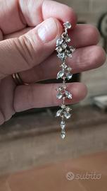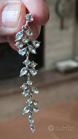 Eleganti orecchini pendenti in metallo argentato con strass. Lunghezza 7.5 cm