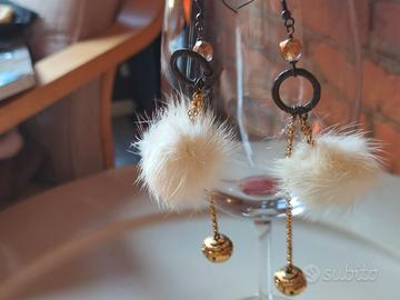 - Ogni orecchino presenta una piccola palla in metallo dorato come ciondolo.