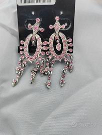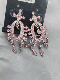 Orecchini Pendenti Brillantini Rosa