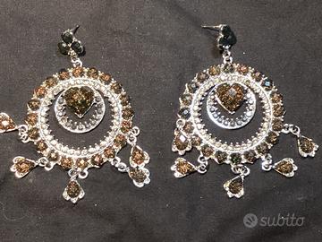 Orecchini pendenti con ciondoli a goccia e cuore centrale su montatura di metallo argentato