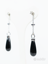 Orecchini pendenti in oro bianco 750 18kt con onice e diamanti di massa complessiva stimata 0.12ct, colore e prezza stimate G-VS.