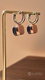 Orecchini pendenti in argento sterling S925 (punzonato), ispirati all’iconico design Pomellato. Le pietre in vetro di un blu intenso e profondo sono incastonate in una montatura finemente lavorata, conferendo al gioiello un aspetto elegante e senza tempo.