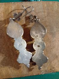 orecchini pendenti in argento e corallo, lunghi 9 cm. chiusura a gancio, manifattura artigiana leggeri e molto caratteristici, si indossano con tranquillità senza provocare pesantezza al lobo.