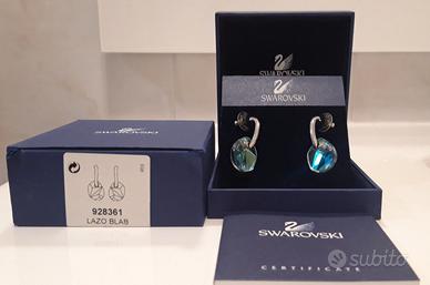 Orecchini pendenti formati da perno rodiato con all'estremità grande cristallo verde acqua, sfumato aurora borealis sul retro e piccolo cristallo incastonato nella parte posteriore.