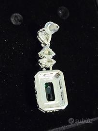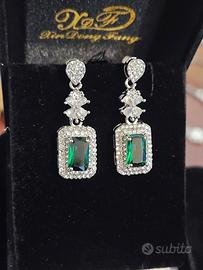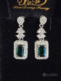 orecchini pendenti in acciaio placcati oro bianco con zirconi brillanti per donna con lobo forato accessorio chic