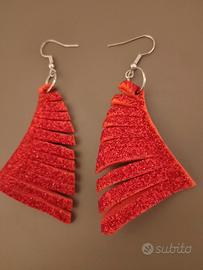 Orecchini pendenti realizzati in gomma Eva con finitura glitterata. - Design a forma di ventaglio con frange. - Materiale leggero e flessibile.