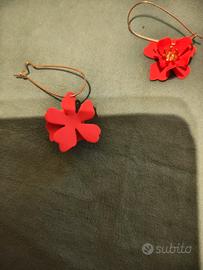 Un paio di orecchini pendenti a forma di fiore arancione, facili e carini, con petali in metallo multistrato. Lunghezza 58mm e 23mm larghezza. Molto belli da indossare specialmente d'estate. Ho più prodotti per spose/ accessori acconciature,etc...sul mio profilo.