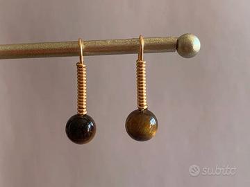 Orecchini pendenti fatti a mano con pietre naturali avvolte in filo di Rame, colo oro.