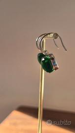 Realizzati in argento sterling punzonato, ogni paio è impreziosito da una raffinata pietra in vetro verde scuro, sfaccettata e di alta qualità, che brilla elegantemente a seconda della luce.