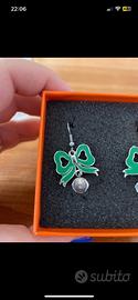 Propongo questi orecchini con fiocco verde e punto luce pendente!