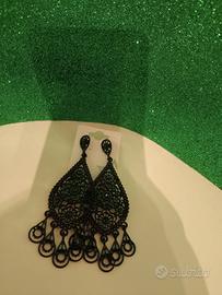 Orecchini pendenti neri con brillantini