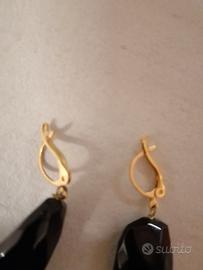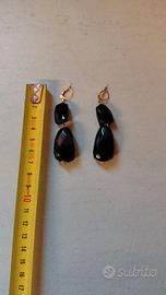 Eleganti orecchini pendenti con pietre nere sfaccettate e dettagli dorati.