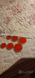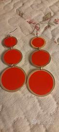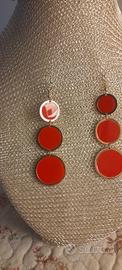 Bellissimi orecchini pendenti con tre tondi rossi di diverse misure. Nuovissimi