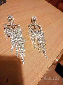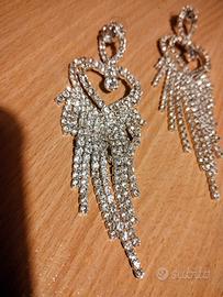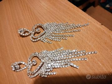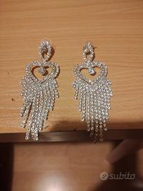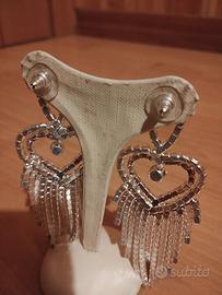 eleganti orecchini pendenti a forma di cuore tempestati di strass luminosi