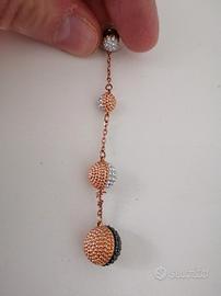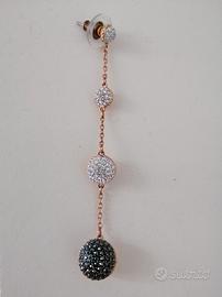 Orecchini pendenti Swarovski, modello Lollypop cod. 5416527. Sono placcati in oro rosa ed hanno sfere di pavé di cristallo. Lunghezza: 8 cm.