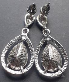 Orecchini pendenti con grande pietra a goccia color ametista contornata da piccole trasparenti.