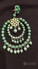 Orecchini pendenti verde intenso, mai usati, non forniti di monachella ferma lobo.