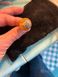 Vendo coppia di orecchini pendenti vintage con sfere arancioni in resina/bachelite e montatura decorata in metallo color argento.
