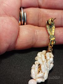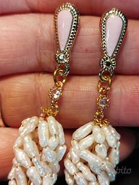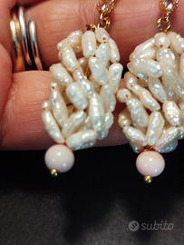 orecchini in perle di fiume e corallo rosa montati in argento...nuovi mai indossati
