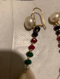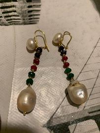Orecchini perle, radici rubino, smeraldi, zaffiri
