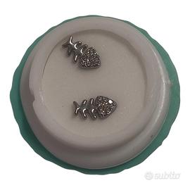 Graziosi #orecchini a forma di #lisca di #pesce, perfetti per aggiungere un tocco di #originalità. - Design a forma di lisca di pesce. - Dettagli #scintillanti con #brillantini. - #Montatura in #metallo #color #argento. - #Custodia a forma di #macaron color #verde #acqua con #stampa di #unicorno. Simpatici per un #idea #regalo, #nuovi senza #cartellino