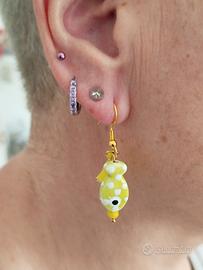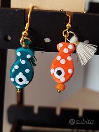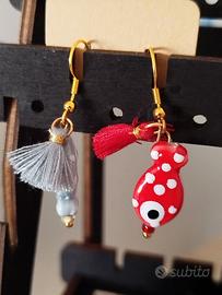 orecchini pesciolino con nappina . il pesce è in ceramica e misura 2cm. gancio in acciaio anallergico senza nichel e rame. 3,50€ al paio a vostra scelta secondo la disponibilità del momento. annuncio presente anche su altri siti. in confezione regalo 🎁