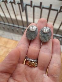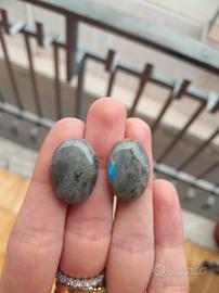 orecchini in labradorite naturale uno di essi presenta un riflesso blu, proprio perché pietra naturale.