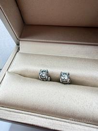 Eleganti orecchini punto luce, realizzati in argento vero S925 con placcatura in oro bianco 18K, impreziositi da diamanti Moissanite colore verde acqua, taglio brillante, incastonati a quattro griffe, con purezza VVS1 e brillantezza superiore al diamante.