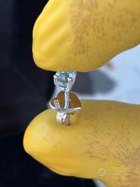 Coppia orecchini punto luce, oro bianco 18 ct, punzone presente, con scatola . Pietre naturali incastonate acquamarina . No perditempo.