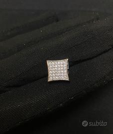 paio di orecchini quadrati con zirconi, in accaio inossidabile, nuovi mai indossati