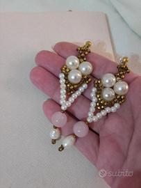 Orecchini Quarzo rosa perle di fiume Vintage
