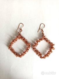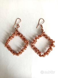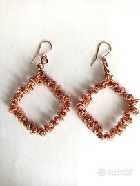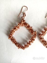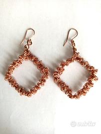 originali orecchini realizzati con la tecnica wire, filo di rame puro lavorato a mano, ogni lato misura 2,5 cm