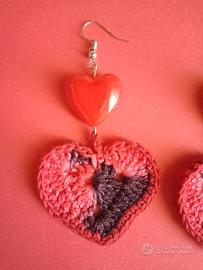 orecchini realizzati a uncinetto cuori