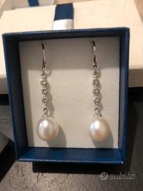 Bellissimi orecchini d'argento 925 3 zirconie e perle vere coltivate in acqua dolce.chiusura a gancio. Presente il certificato di garanzia e bustina regalo