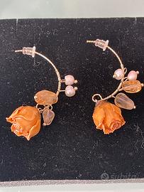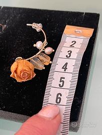 Bellissimi orecchini con boccioli di rosa naturale, perle vere e quarzo citrino naturale