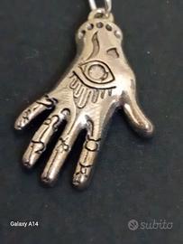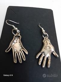 coppia di orecchini senza nichel, mani di cartomante ,simbolo occhio occulto,montatura monachella aperta