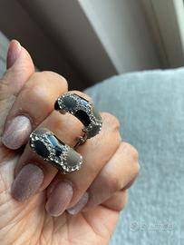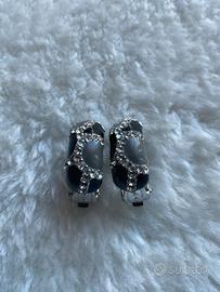 Orecchini smaltati grigio/neri con strass Vintage