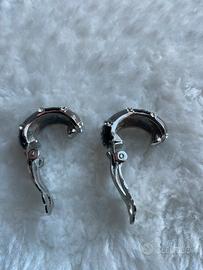 Eleganti orecchini smaltati bicolore: grigio/nero. Dettagli scintillanti con strass. Bellissimo effetto luminoso. Chiusura a clip.