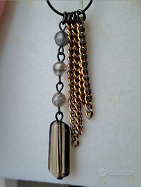 Orecchini Sodini lunghi, con ciondoli di colore nero, blu cangiante e verde, parti metalliche color oro ✨