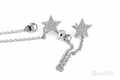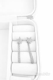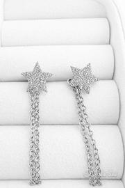 Orecchini in argento 925 stella con pavé di zirconi bianchi e catenella