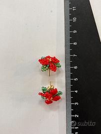 Orecchini a bottone fatti a mano con perline a forma di stella di natale
