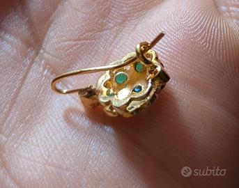 Orecchini pezzo unico stile vittoriano fatti a mano da un artigiano con oro 9kt argento e 20 gemme di smeraldo , per più informazioni contattatemi