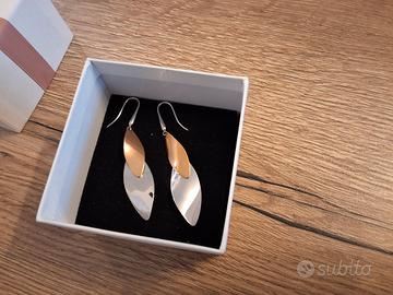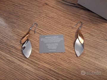 Orecchino pendente a foglia inn metalo, con una foglia color oro e una color argento. Certificato diisponibile. Mai indossati. Scatola Stroili oro originale.